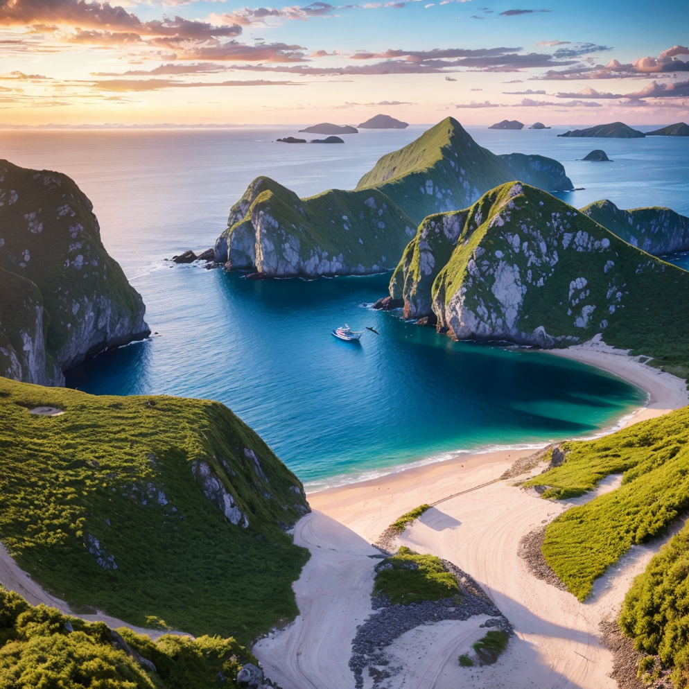 해안선을 따라 크루즈가 움직이며 불빛이 반짝이는 바다와 함께 야경이 펼쳐진다.